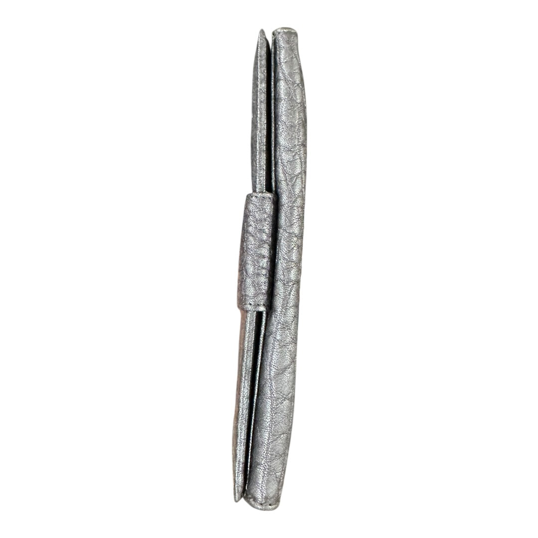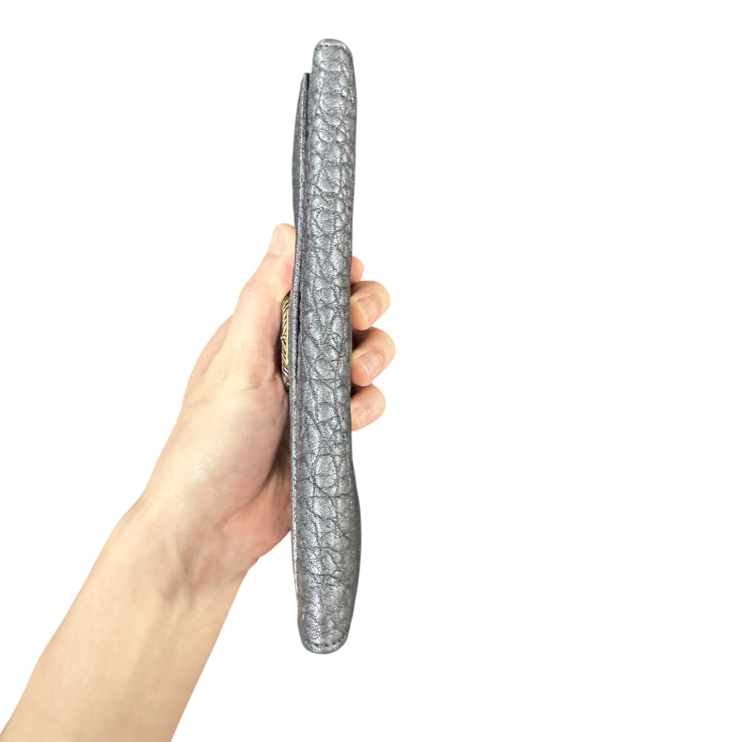 Product Overview A bold and luxurious long wallet by Bvlgari from the "Leoni" collection. Crafted in eye-catching metallic silver grained leather, this piece features the iconic dual lion head hardware in an antique gold-tone finish. Its spacious interior and distinctive design make it both a statement accessory and a practical daily essential.