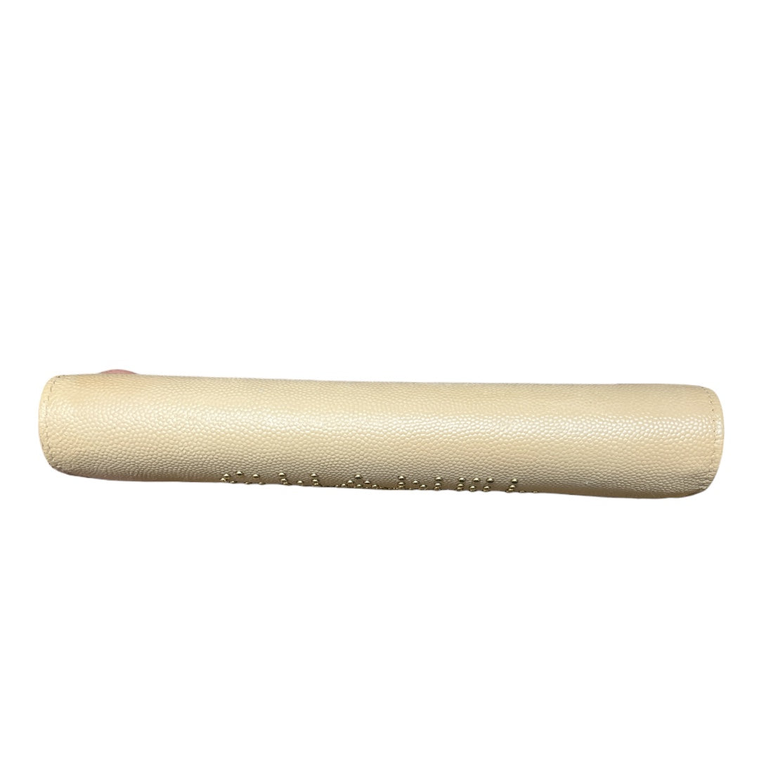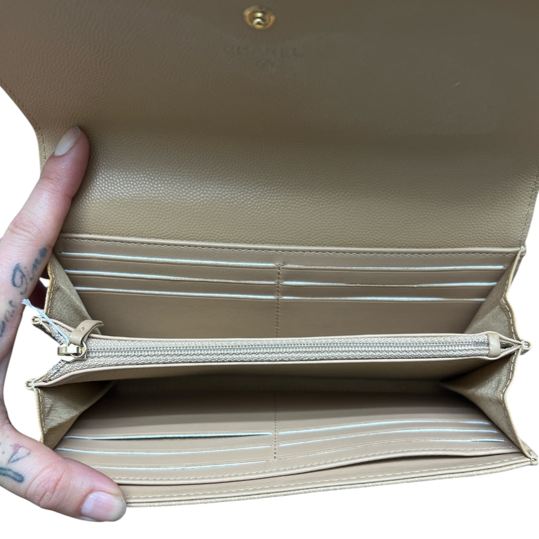 CHANEL Deauville Stud Logo Round Zip Long Wallet Caviar Skin Beige CH2066