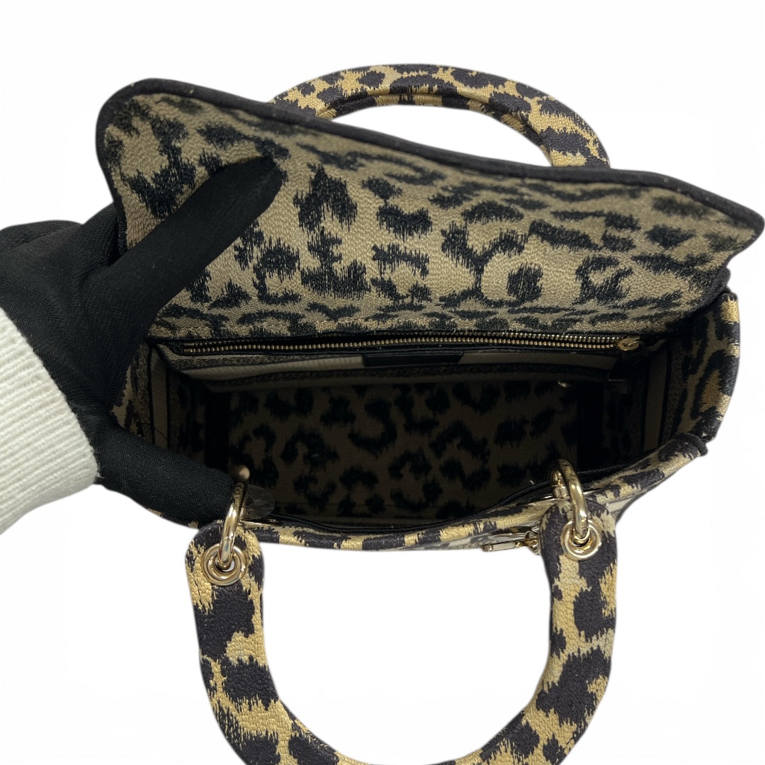 CHRISTIAN DIOR Lady Dior handbag in leopard print design, with detachable strap.
