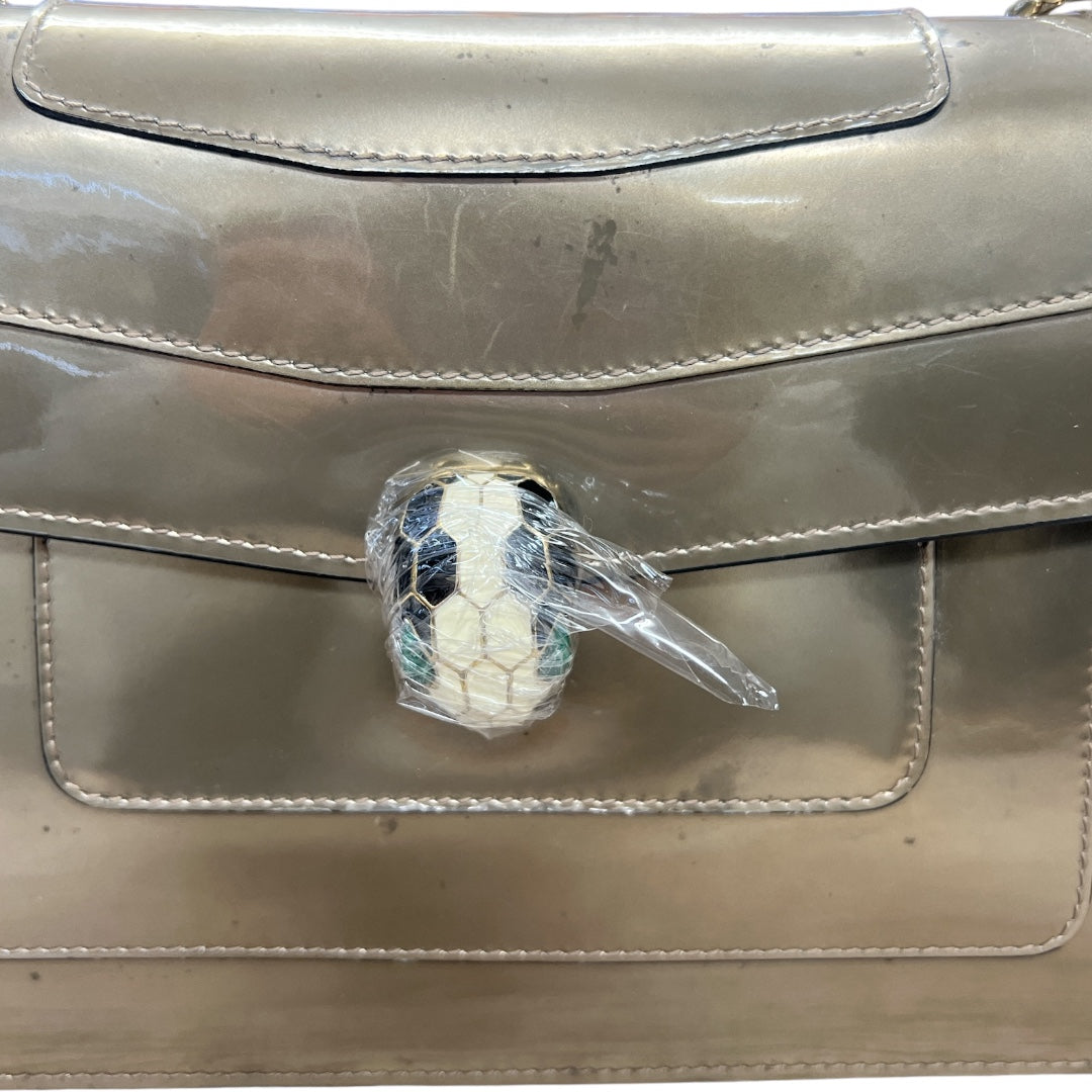 BVLGARI Serpenti Forever Patent Leather Chain Shoulder Bag Silver BV61
