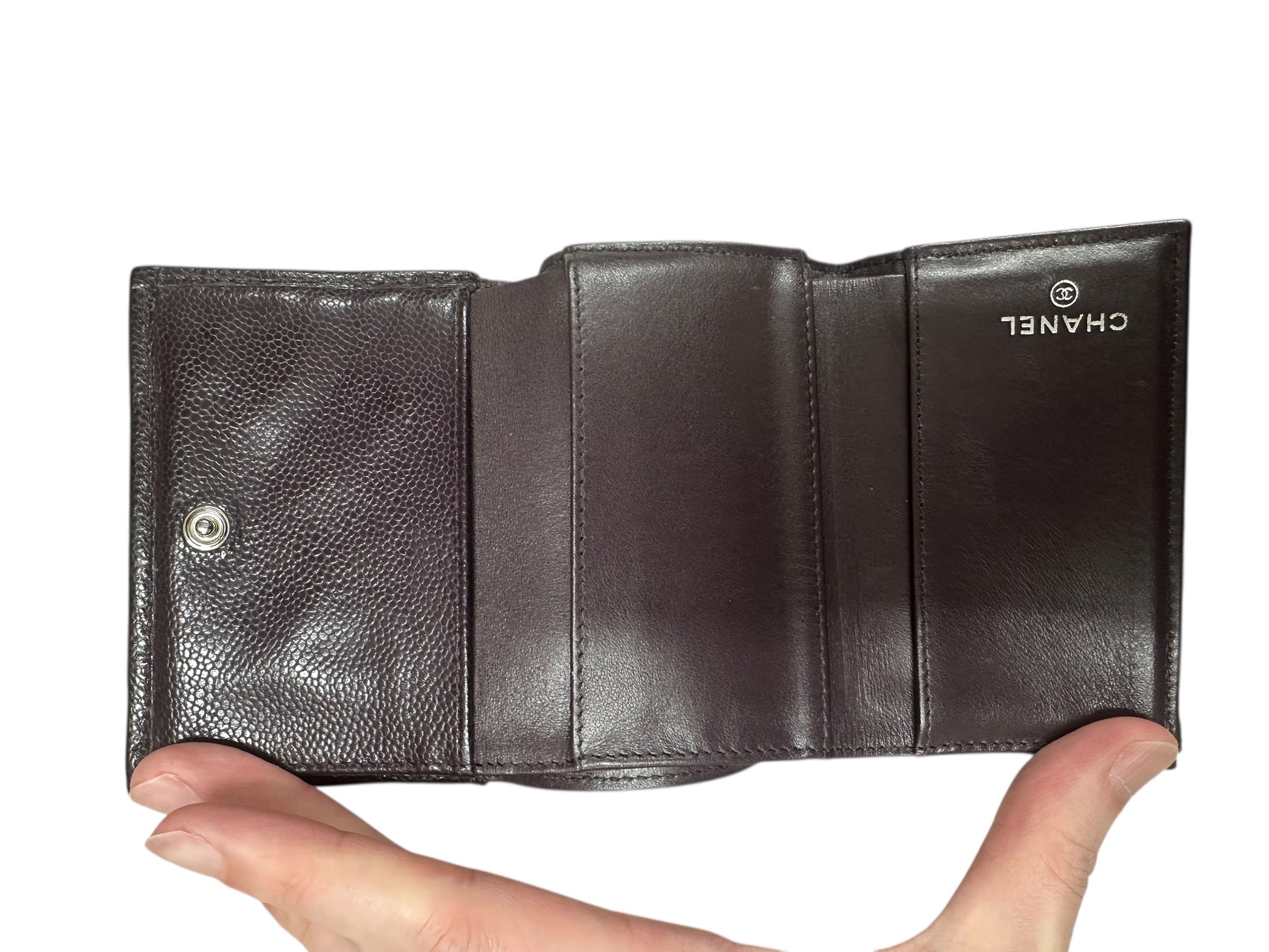 Product Details Brand: Chanel Model: Boy Chanel Compact Wallet (Tri-fold) Material: Caviar Leather (Grained Calfskin) Color: Black Hardware: Silver (Ruthenium Finish)