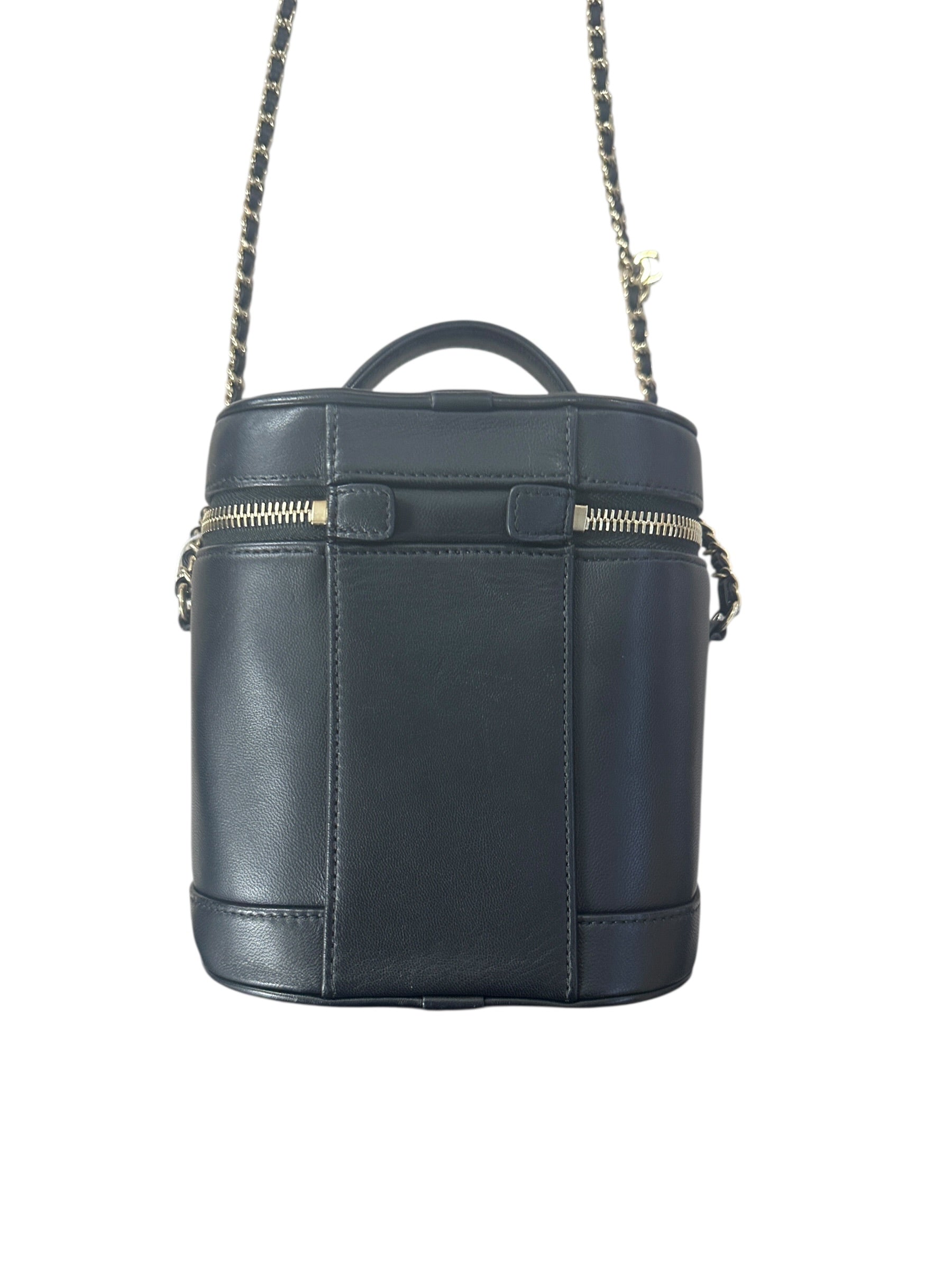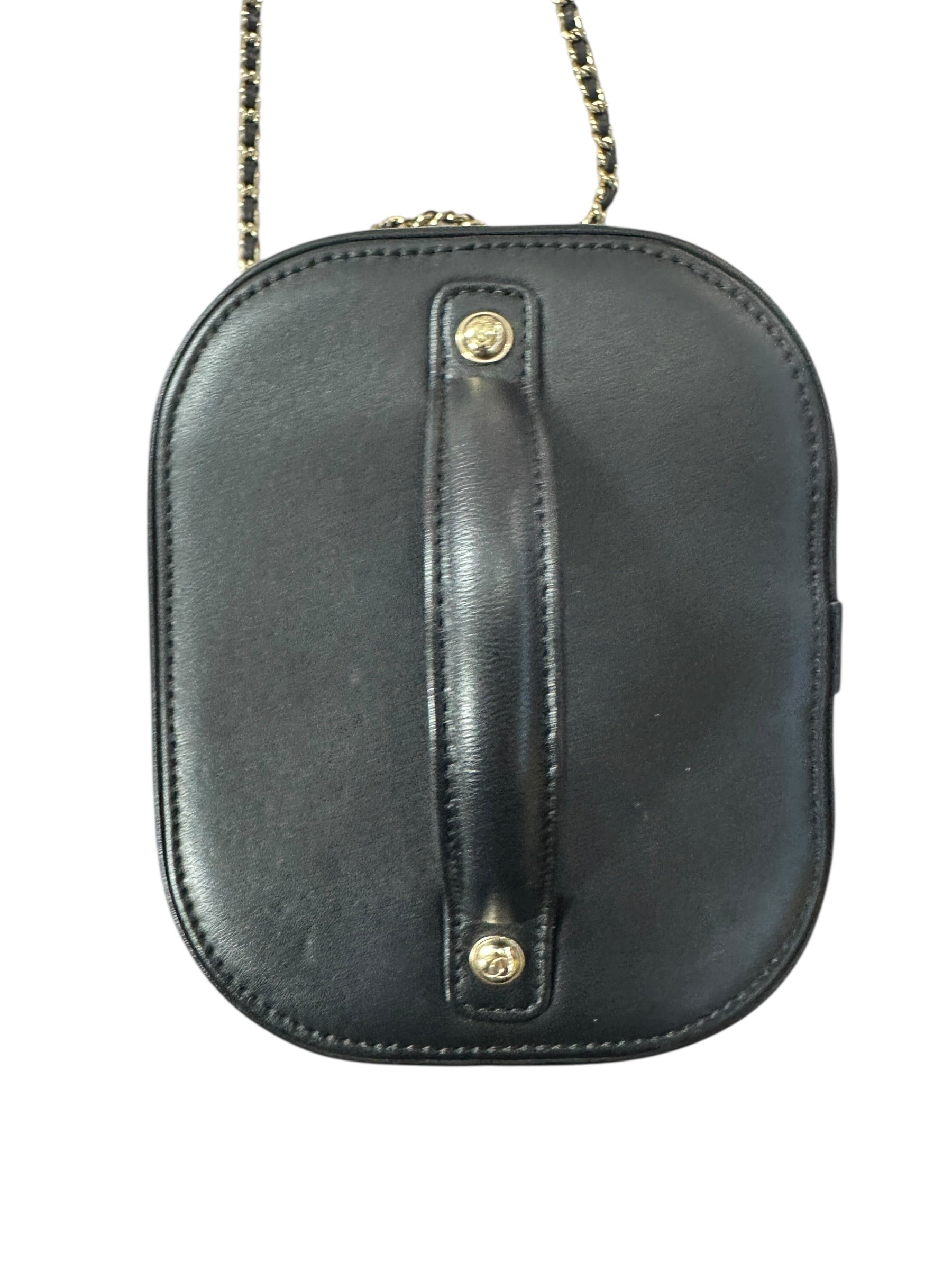 Chanel Filigree Vanity Case Leather Bag Black Gold Hardware -CH2097