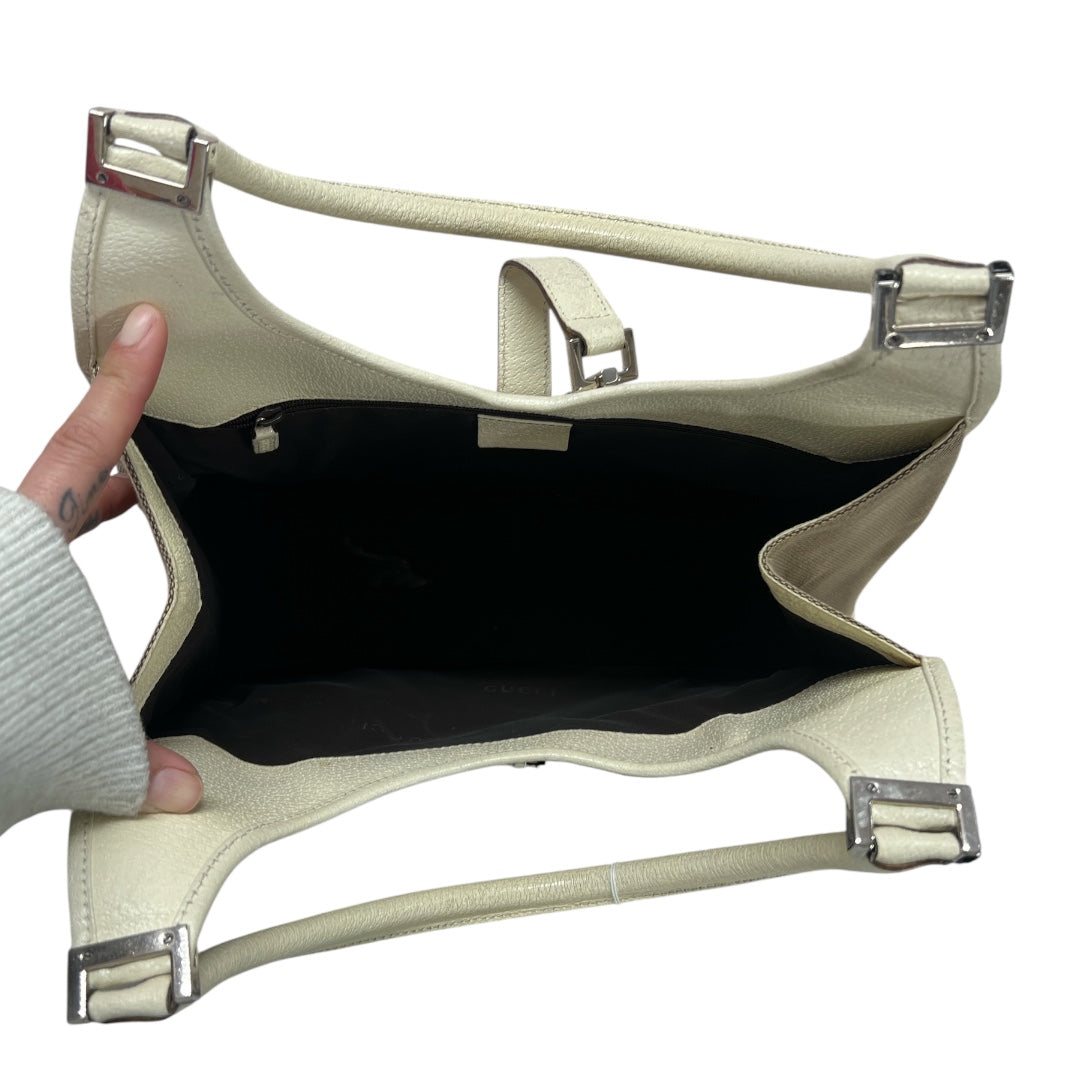 GUCCI Jackie Canvas Leather Hobo Shoulder Bag Beige GU563